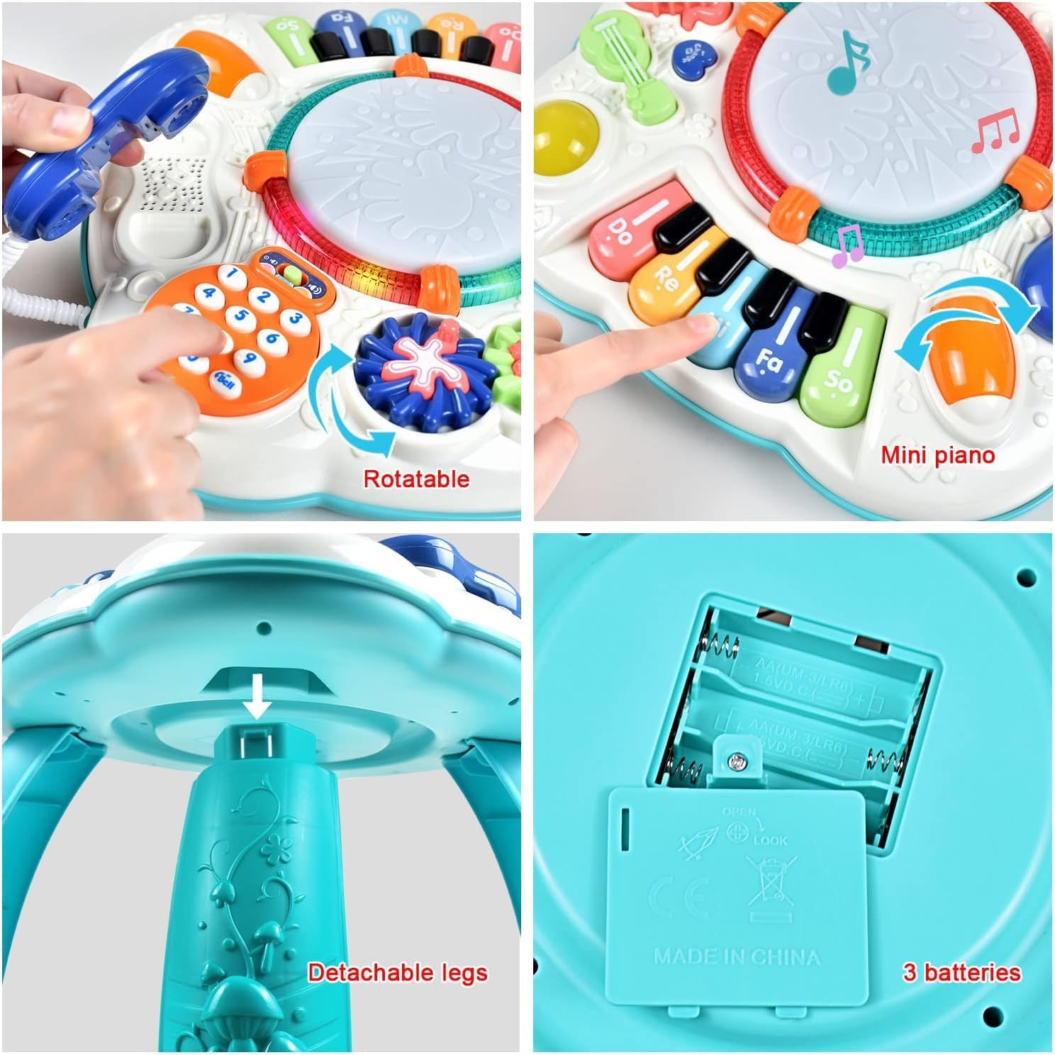 Multifunctional Baby Toy: Beat the drum, rotate the gear, pick up the phone, press piano and various music buttons that can develop baby’s fine motor skill and cultivate musical sentiment. It’s helpful for baby’s early education